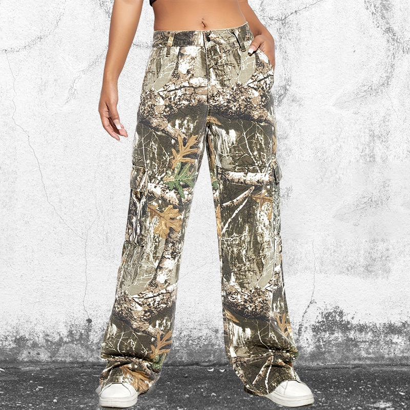 - Design features: camouflage print pants, with pocket design, high waist straight leg, loose casual sports pants.